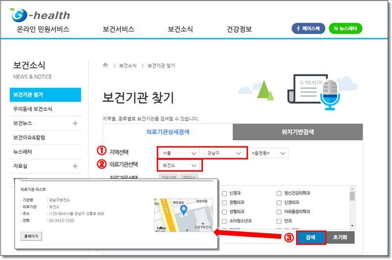 첫째, 지역 보건소 검색 및 방문